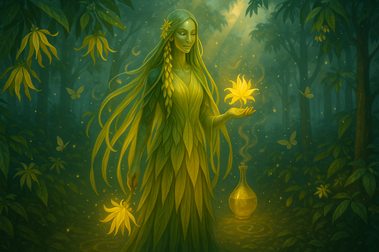 Kananga vonná (Cananga odorata var. macrophylla) je nepoddajný strom, prerastajúci tropickou vegetáciou. Toľko cenený esenciálny olej je získavaný z jeho nádherne žltých kvetov šetrným procesom, destiláciou vodnej pary .